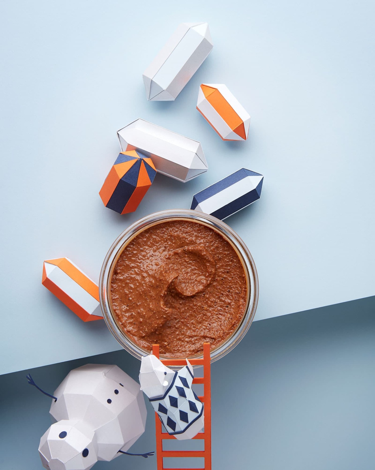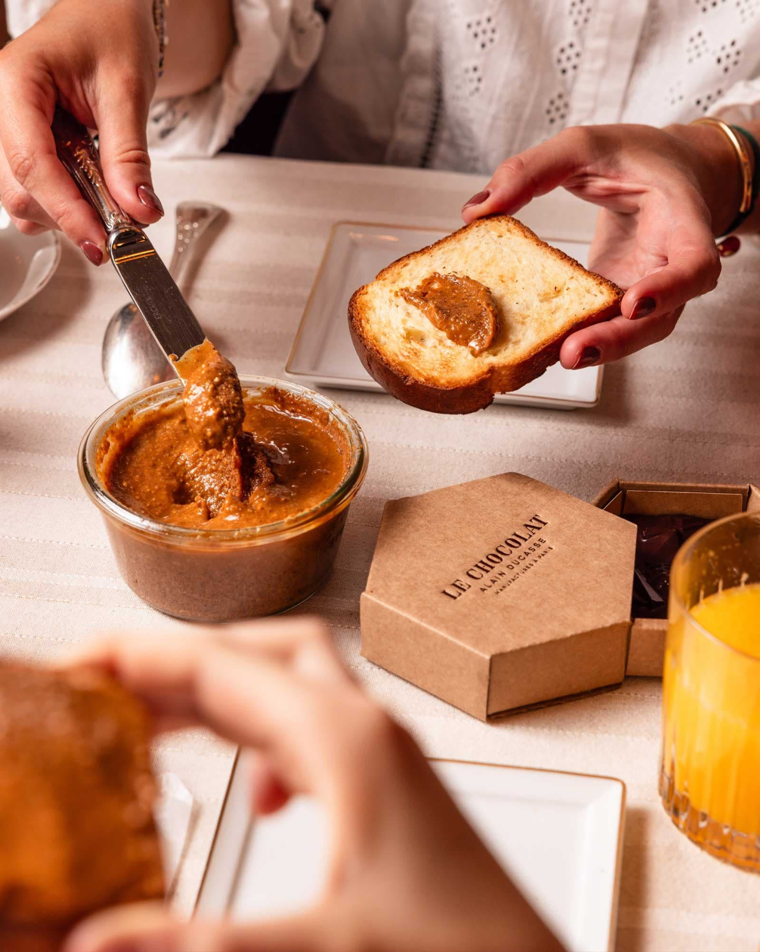 qui garnissent plusieurs de nos créations, le praliné noisette à tartiner offre cette texture légèrement granuleuse qui a un goût de reviens-y, et plutôt dix fois qu’une.