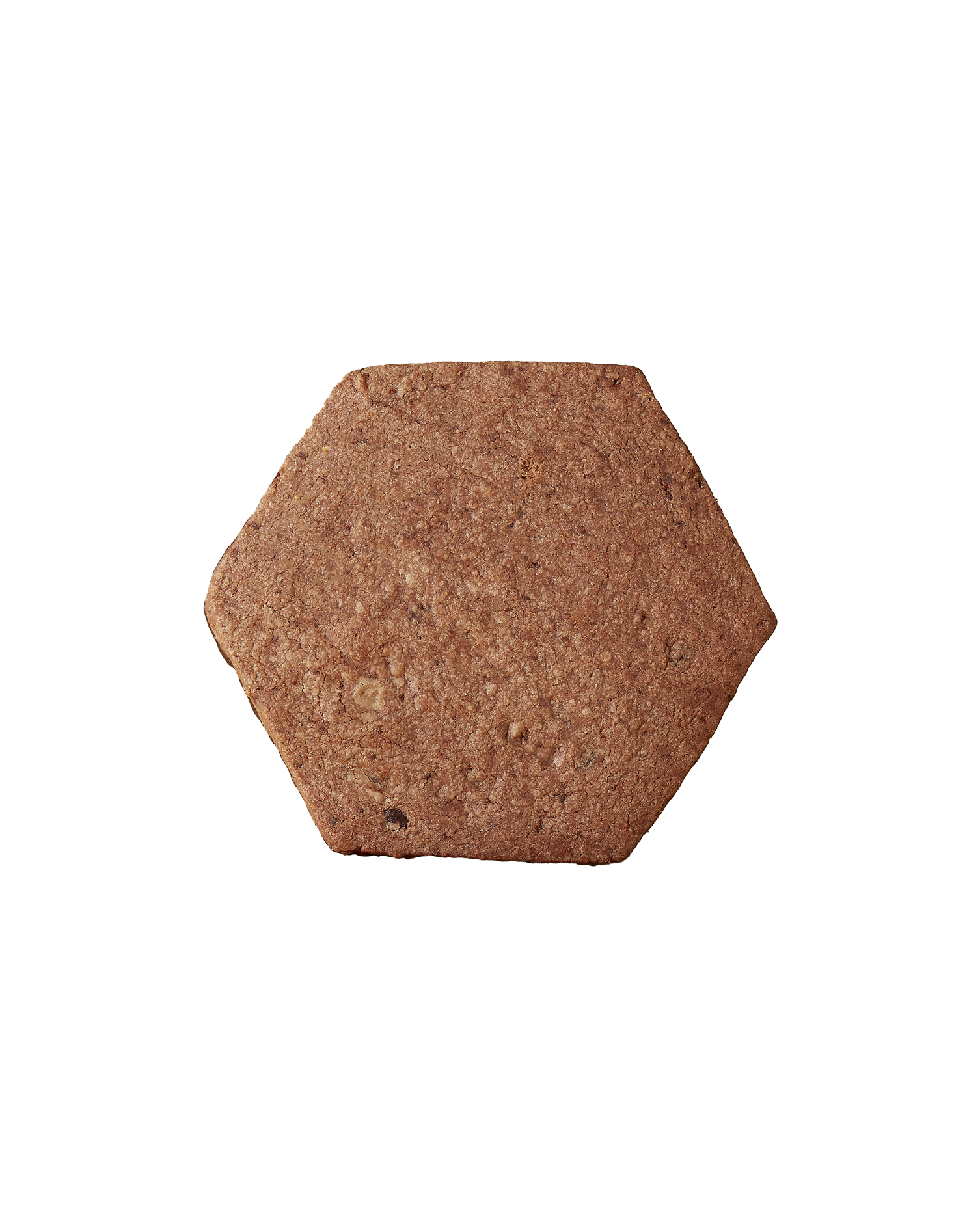 Dans cette version de grand hexa, le mélange de farine s'accompagne d'une masse de chocolat de Madagascar, ainsi que d'inclusions de grué de cacao, apportant texture et intensité. En fin de cuisson, chaque biscuit est talonné dd'un chocolat noir de couverture 75% Cameroun, de quoi faire fondre les plus gourmands...