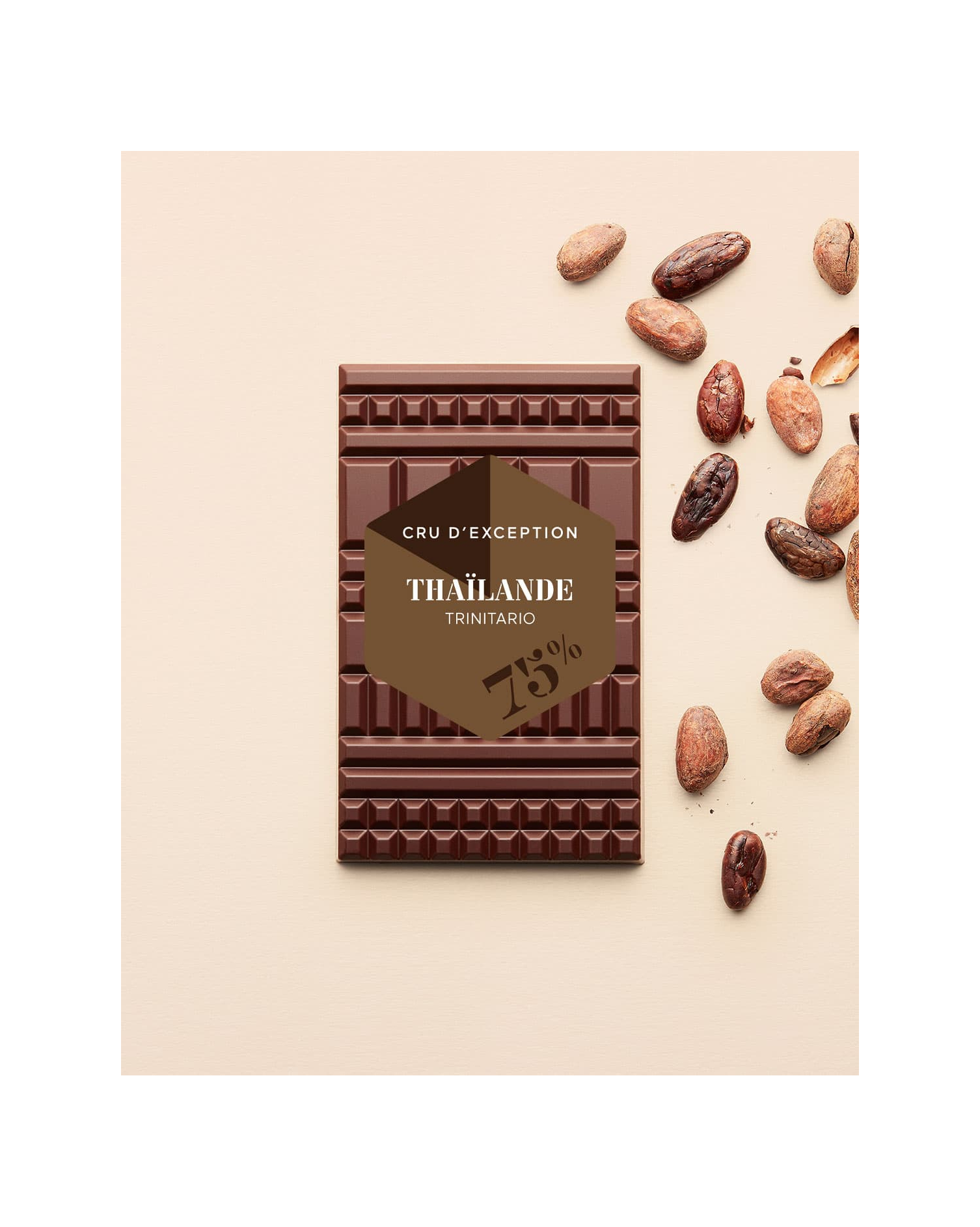 Dès la première bouchée, des notes fruitées et exotiques s’expriment, laissant place à des accents boisés et profonds.Avec nos tablettes Cru d’Exception, nous mettons en lumière la richesse sensorielle des terroirs du monde, pour une expérience chocolatée unique et authentique.